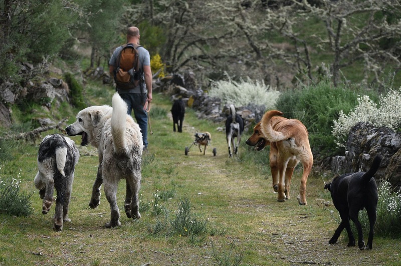 Este grandote es un perro que trabajaba cuidando vacas en un pueblo cercano. Un día paseando a nuestra manada lo vimos a lo lejos y le llamamos. Sorpresivamente se vino con nosotros. Era muy cariñoso y vino hasta casa. Le dimos de comer y luego lo llevamos de vuelta a donde lo habiamos encontrado.
