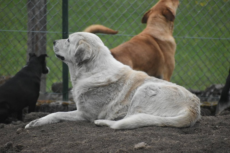Allí tenía una mejor vida, pero aun asi, no era un buen lugar para el. Obelix tiene artritis y en el refugio seguia durmiendo en el frío. Tenia mas espacio que en la perrera y de vez en cuando lo sacaban a una jaula con un poco de cesped con algun otro perro.
